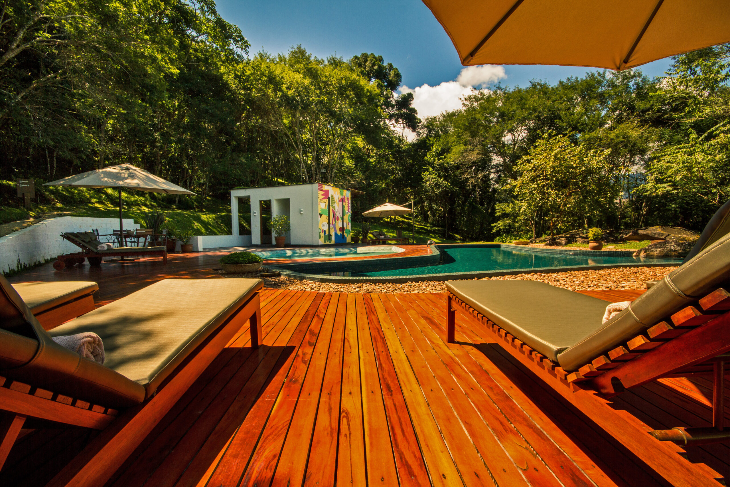 Cada detalhe foi cuidadosamente considerado para respeitar a topografia da região. As tradições nativas, e a arte e a cultura contemporâneas. O design evoca uma sensação de “estar ao ar livre mesmo dentro da acomodação” com visões ininterruptas dos vales e das montanhas da Mantiqueira. São sete espaçosas suítes no prédio principal e 11 vilas nas colinas ao redor, protegidas por árvores e flores exuberantes.