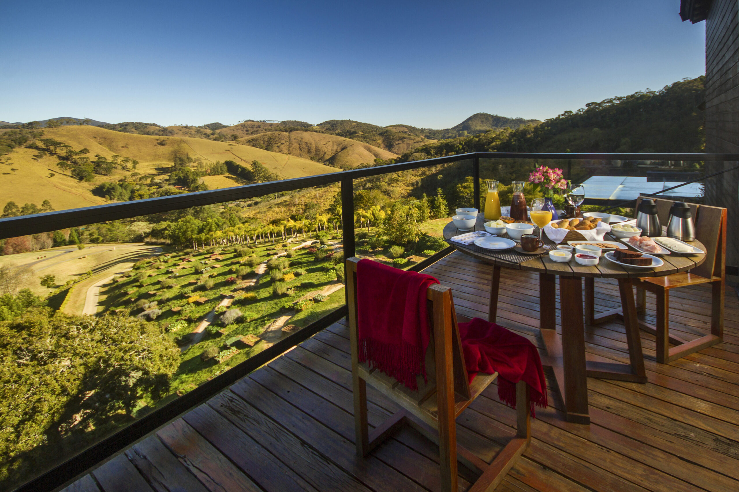 Cada detalhe foi cuidadosamente considerado para respeitar a topografia da região. As tradições nativas, e a arte e a cultura contemporâneas. O design evoca uma sensação de “estar ao ar livre mesmo dentro da acomodação” com visões ininterruptas dos vales e das montanhas da Mantiqueira. São sete espaçosas suítes no prédio principal e 11 vilas nas colinas ao redor, protegidas por árvores e flores exuberantes.